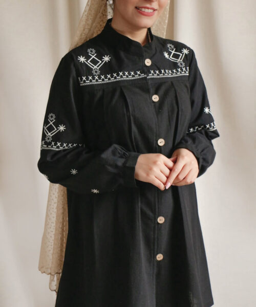 مدل:لیانا 🌸جنس: لینن ☘️از بغل دارای بند می باشد☘️ 🌸طرح روی آستین: گلدوزی 🌸تا کمر دکمه میخورد 🌸 سایز بندی
