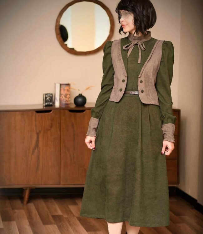 🍁مدل:کت سارافن دیلان 🍁جنس کت:پشمی سپاهان 🍁جنس سارافون: کتان درجه یک 🍁سایز:۱/۲/۳(مناسب ۳۶ تا ۴۴) 🌺سارافن 🍂سایز۱: دورسینه ۸۸/دورکمر۸۰ 🍂سایز۲