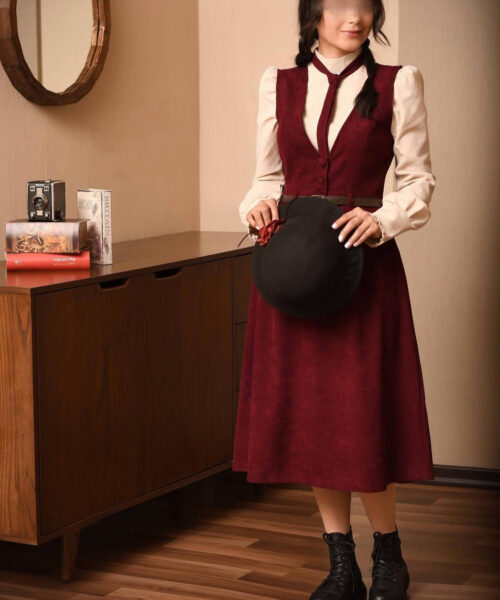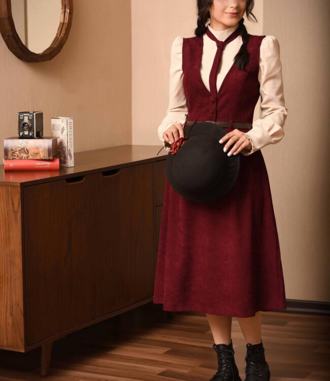 🍁مدل:شومیز و سارافن گیوا 🍁جنس شومیز:لینن 🍁جنس سارافون:مخمل کبریتی وارداتی 🍁سایزبندی:۱/۲/۳ 🌺شومیز 🍂سایز ۱ : دورسینه ۹۴/دورکمر۸۲ 🍂سایز۲ : دورسینه۹۶/دورکمر