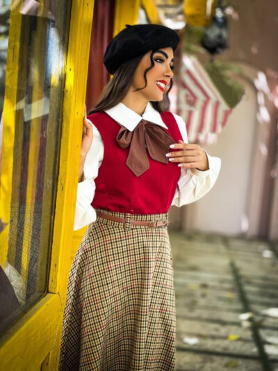 🍁مدل:شومیز و سارافن گیوا 🍁جنس شومیز:لینن 🍁جنس سارافون:مخمل کبریتی وارداتی 🍁سایزبندی:۱/۲/۳ 🌺شومیز 🍂سایز ۱ : دورسینه ۹۴/دورکمر۸۲ 🍂سایز۲ : دورسینه۹۶/دورکمر
